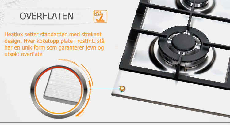 Gasskoketopp fra Heatlux for nedfelling i benkeplate.