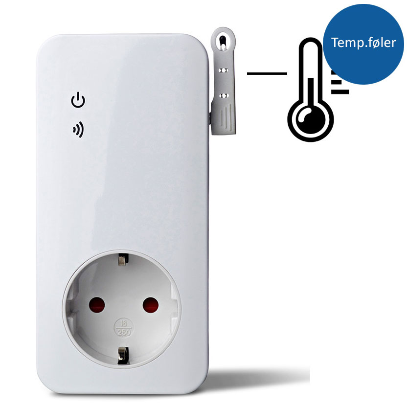 Enheten leveres med en egen temperatursensorer. Det gjør at du enkelt kan overvåke temperaturen, temperaturstyre et el-uttak eller få alarm ved avvik av temperatur. Sett opp temperaturskjemaer som automatisk skrur ovnen på hvis temperaturen går under 10 grader - og automatisk av hvis temperaturen går over 15 grader. Slik holder du temperaturen på hytta jevn hele vinteren!