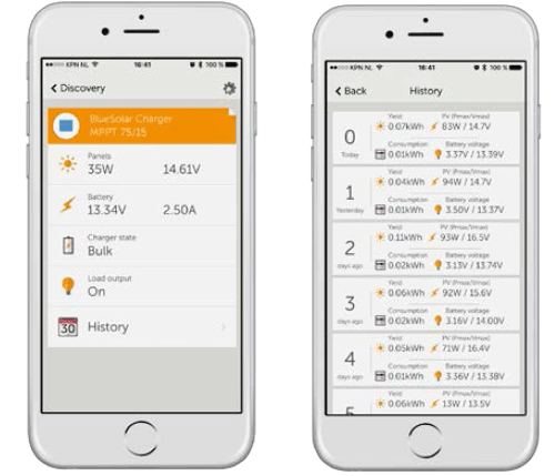 Laderegulatoren kan koples opp mot Apple og Android smarttelefoner* og informasjon kan hentes ut via APP*